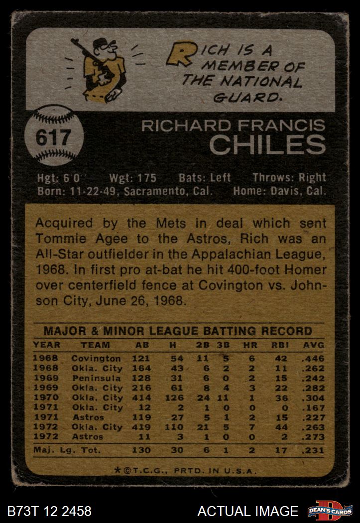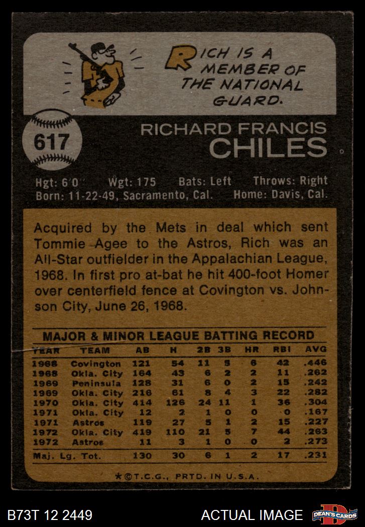 1973 Topps #617 Rich Chiles 1 - POOR