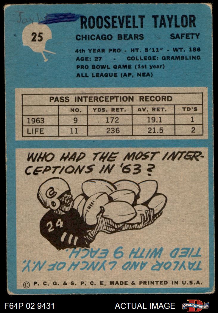 1964 Philadelphia #25 Roosevelt Taylor 2 - GOOD