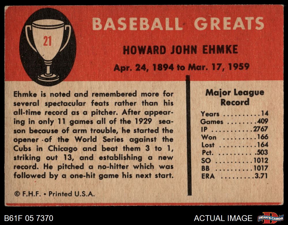 1961 Fleer #21 Howard Ehmke 5.5 - EX+