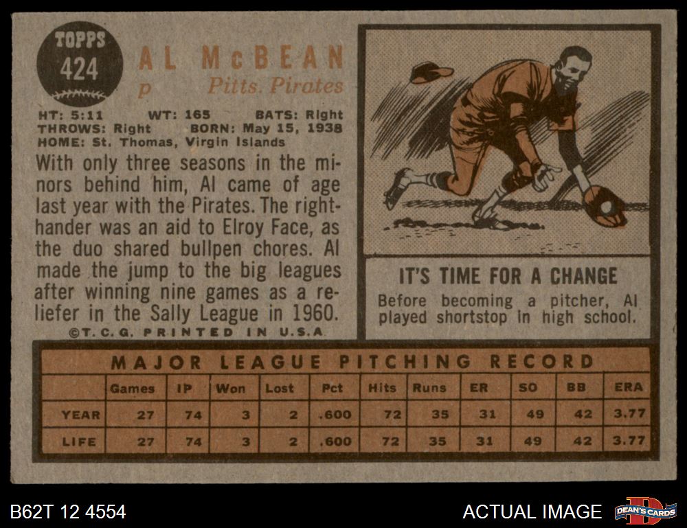 1962 Topps #424 Al McBean 4.5 - VG/EX+