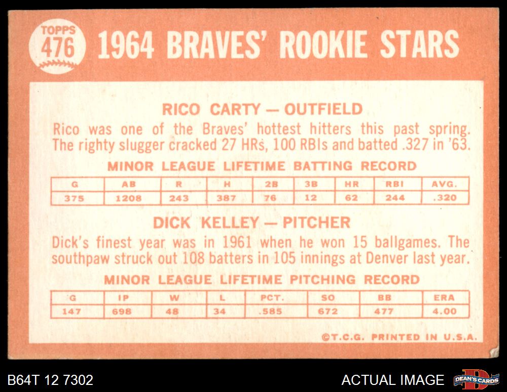 1964 Topps #476 - Rico Carty / Dick Kelley Braves Rookies 3.5 - VG+