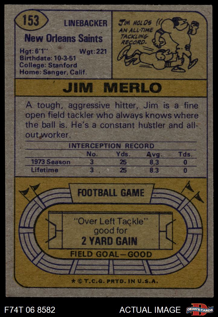 1974 Topps #153 Jim Merlo 5 - EX