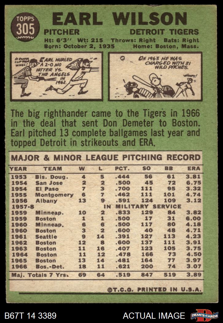 1967 Topps #305 Earl Wilson
