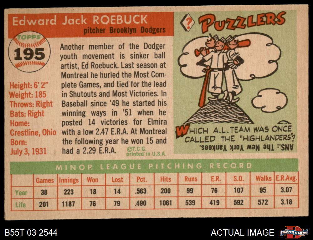 1955 Topps #195 Ed Roebuck 5 - EX