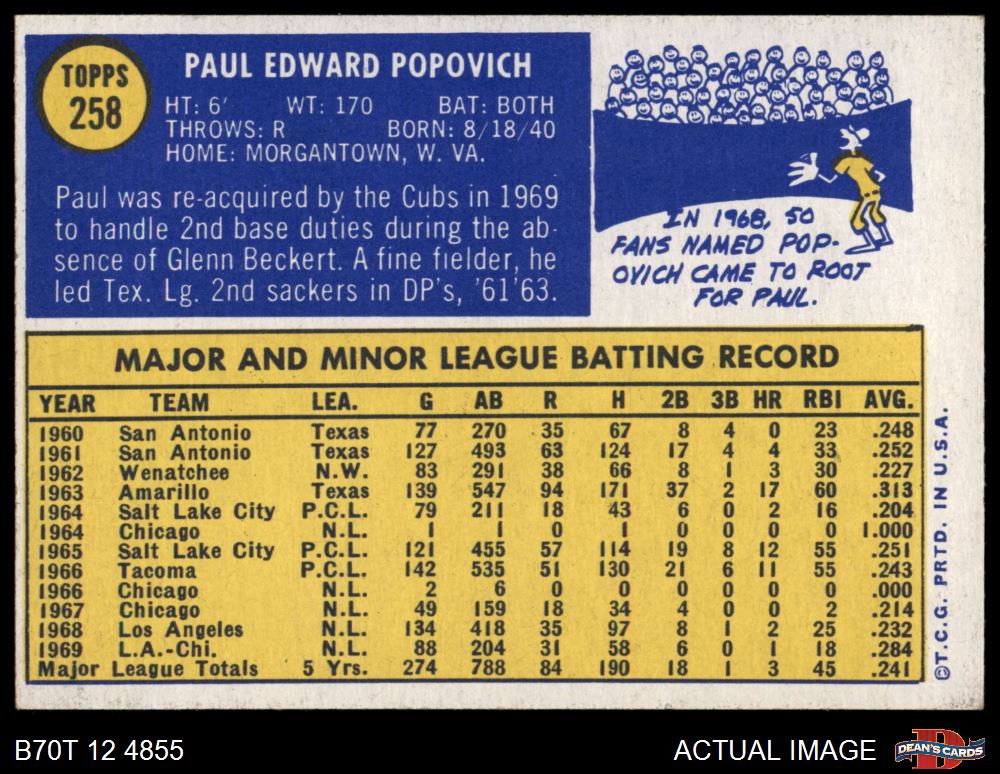 1970 Topps #258 Paul Popovich 6 - EX/MT