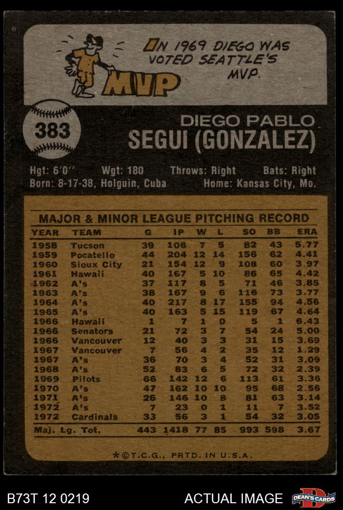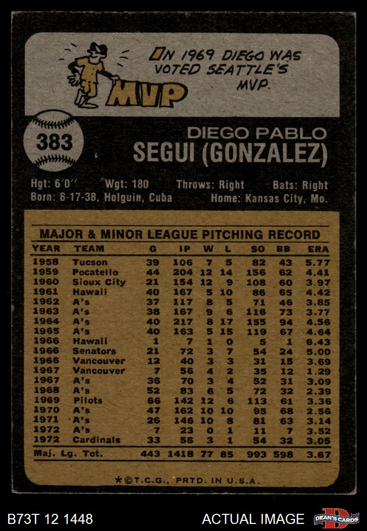 1973 Topps #383 Diego Segui 3 - VG