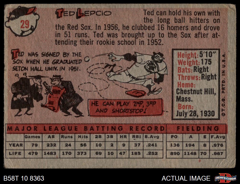 1958 Topps #29 Ted Lepcio 1.5 - FAIR