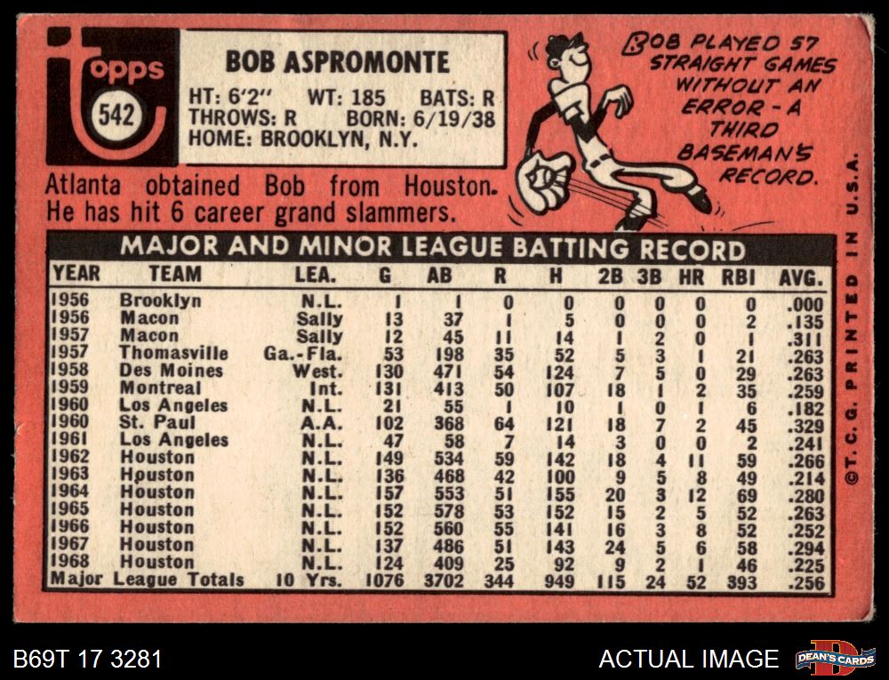 1969 Topps #542 Bob Aspromonte 3 - VG