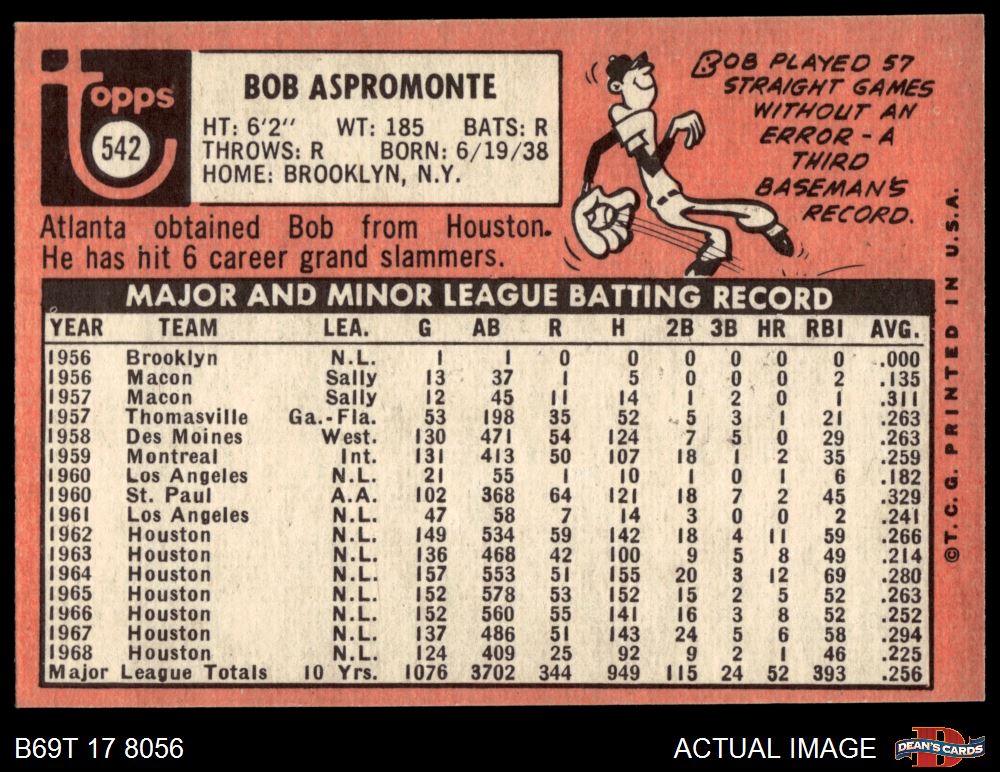 1969 Topps #542 Bob Aspromonte 6 - EX/MT