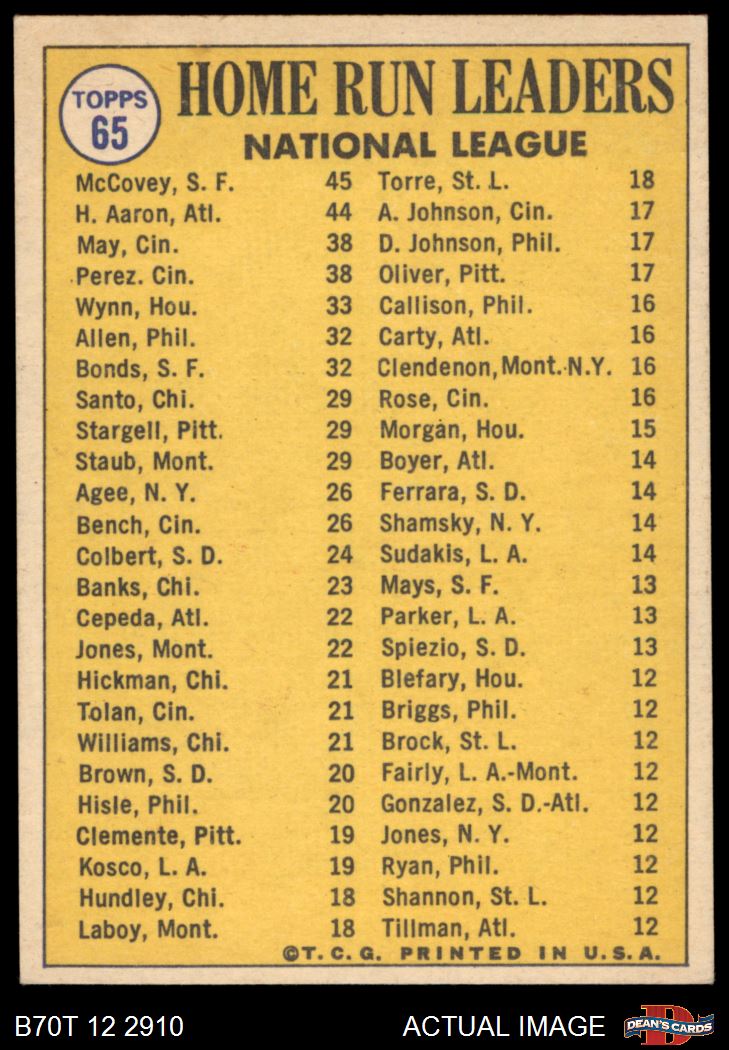 1970 Topps #65 - Hank Aaron / Lee May / Willie McCovey NL HR Leaders 6 - EX/MT
