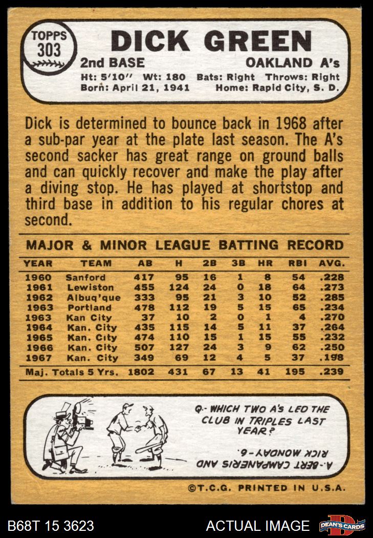 1968 Topps #303 Dick Green