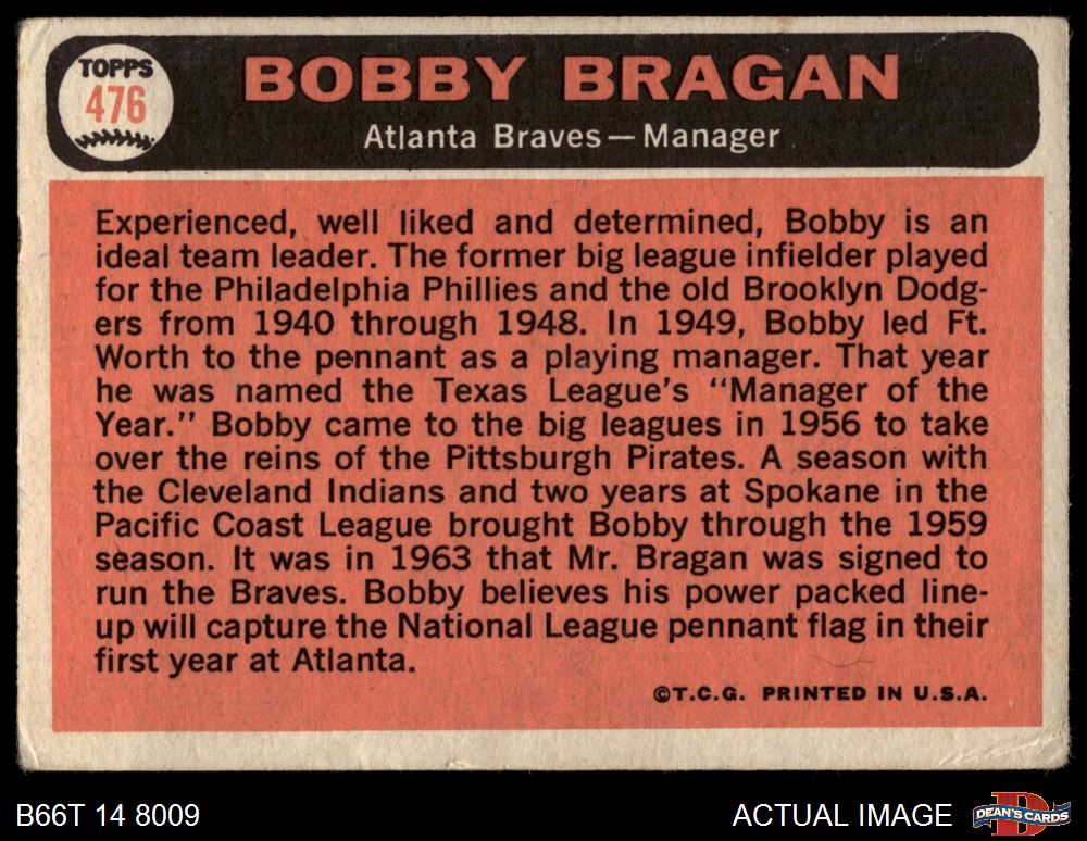 1966 Topps #476 Bobby Bragan 2 - GOOD