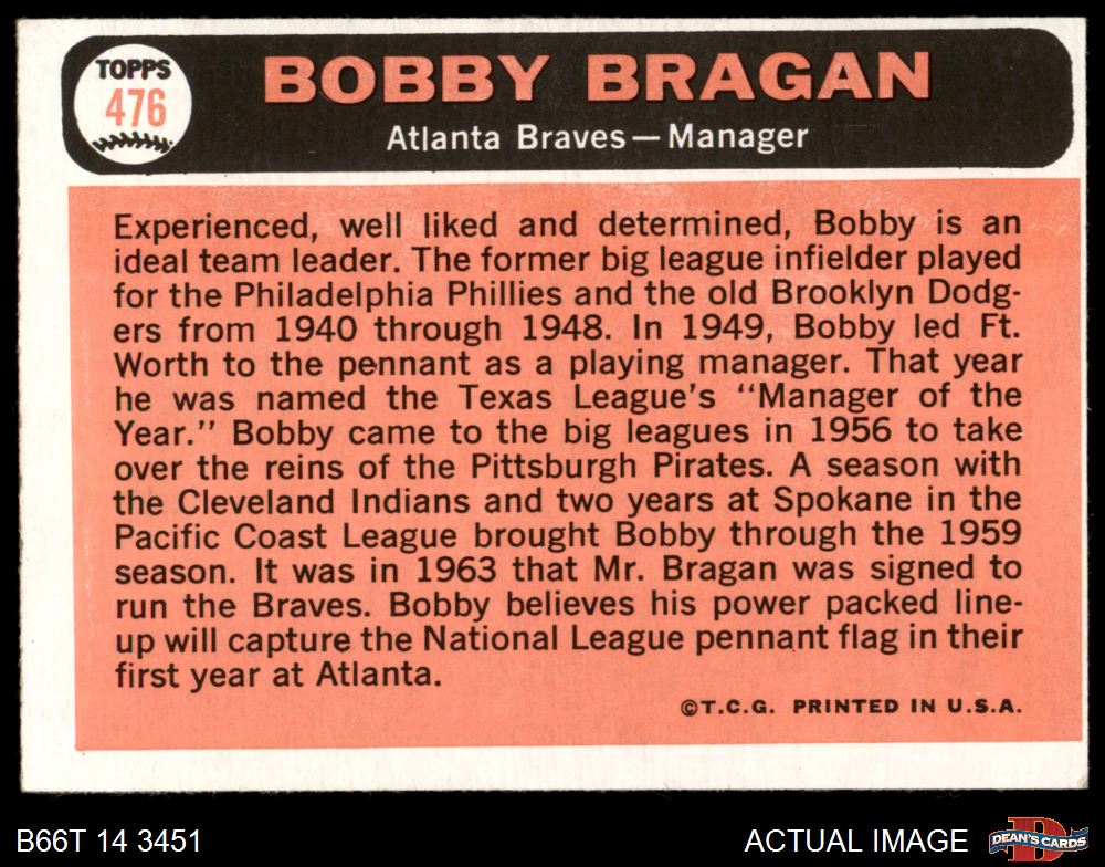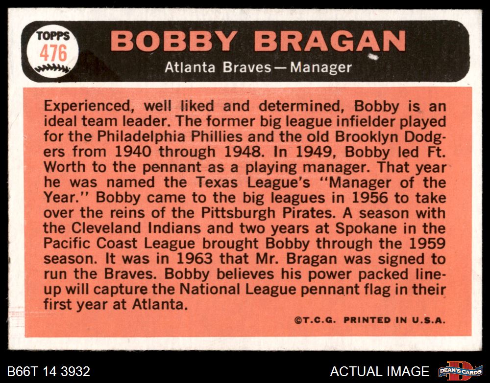 1966 Topps #476 Bobby Bragan 5 - EX