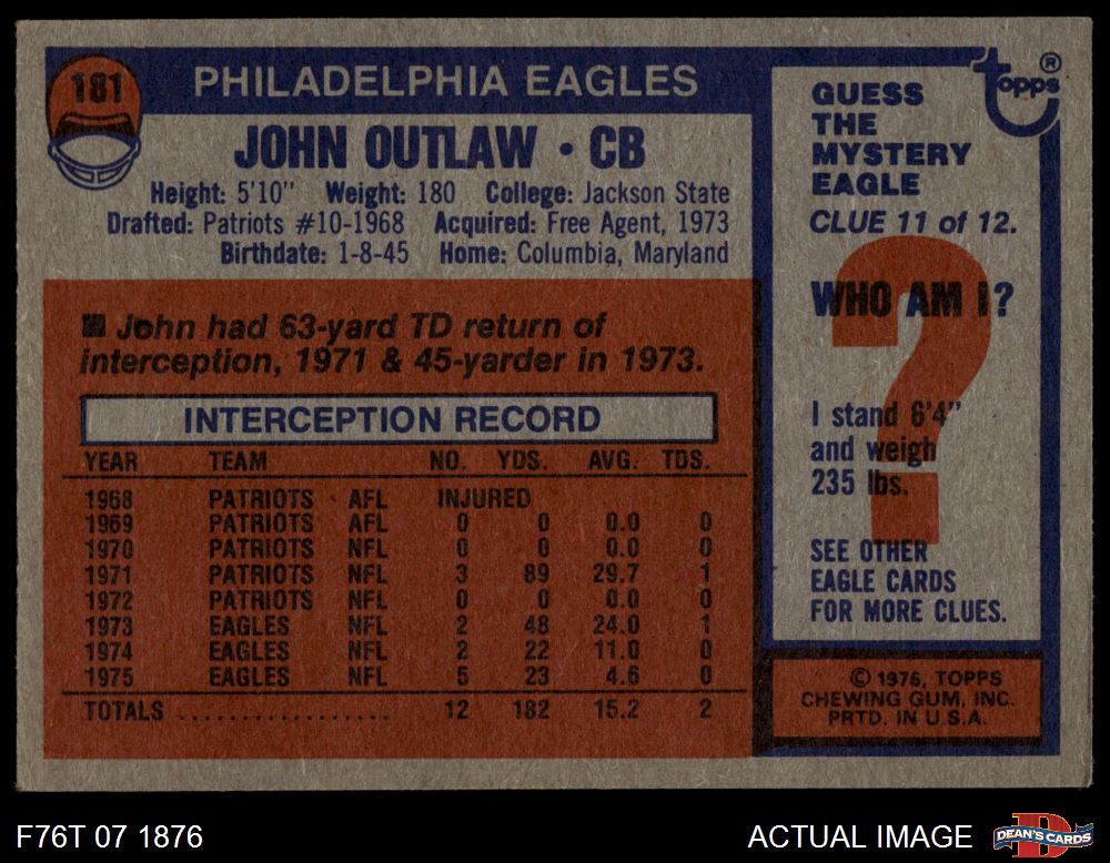 1976 Topps #181 John Outlaw 4 - VG/EX