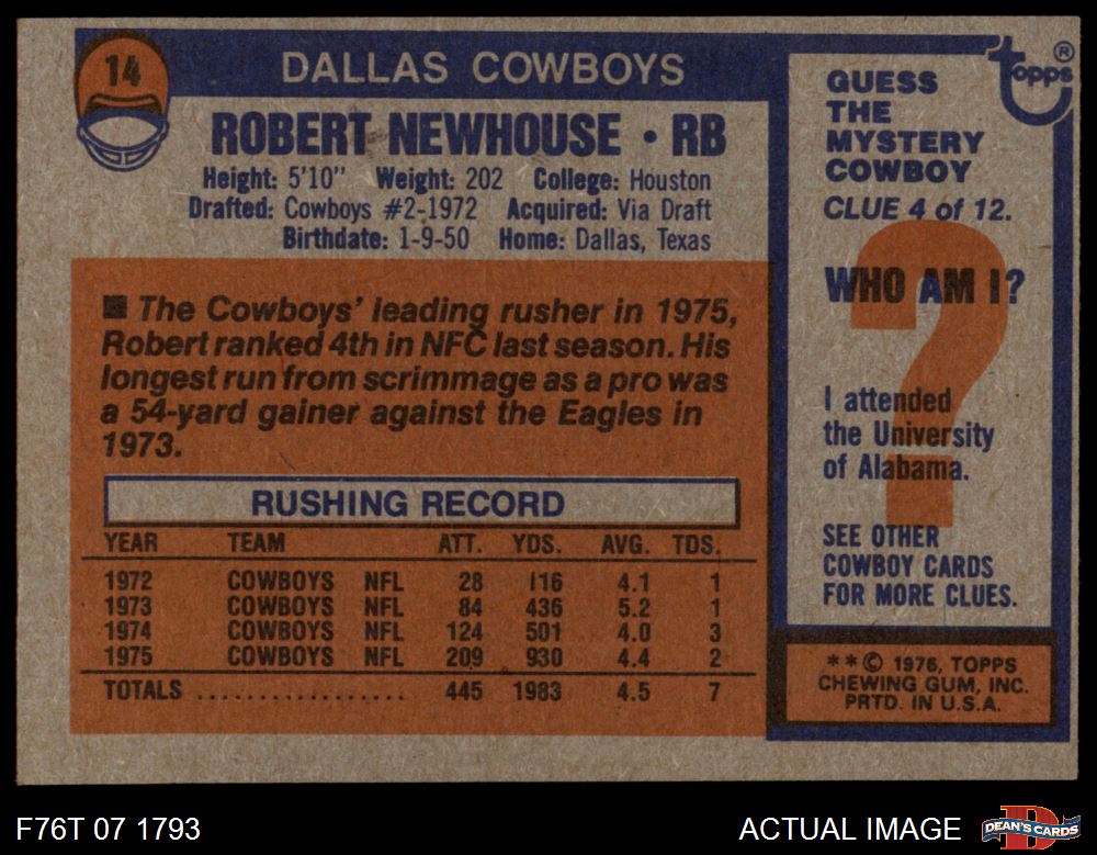 1976 Topps #14 Robert Newhouse 4 - VG/EX