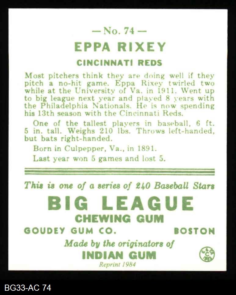 1933 Goudey Reprint #74 Eppa Rixey 8 - NM/MT