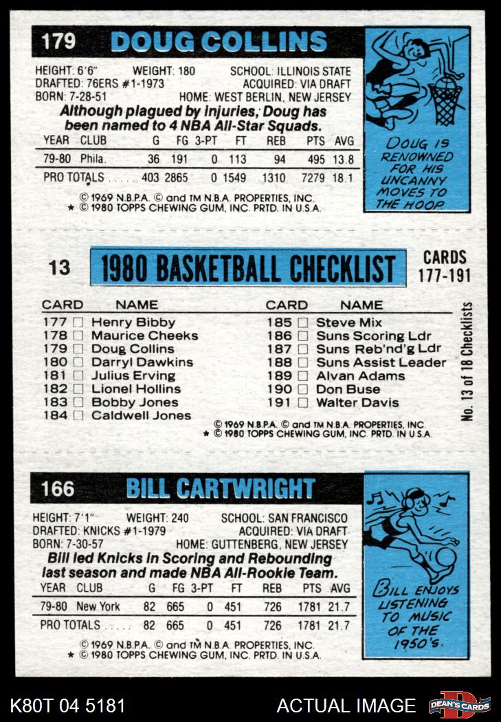 1980 Topps - Bill Cartwright / Eddie Johnson / Doug Collins 166 / 13 / 179 8 - NM/MT