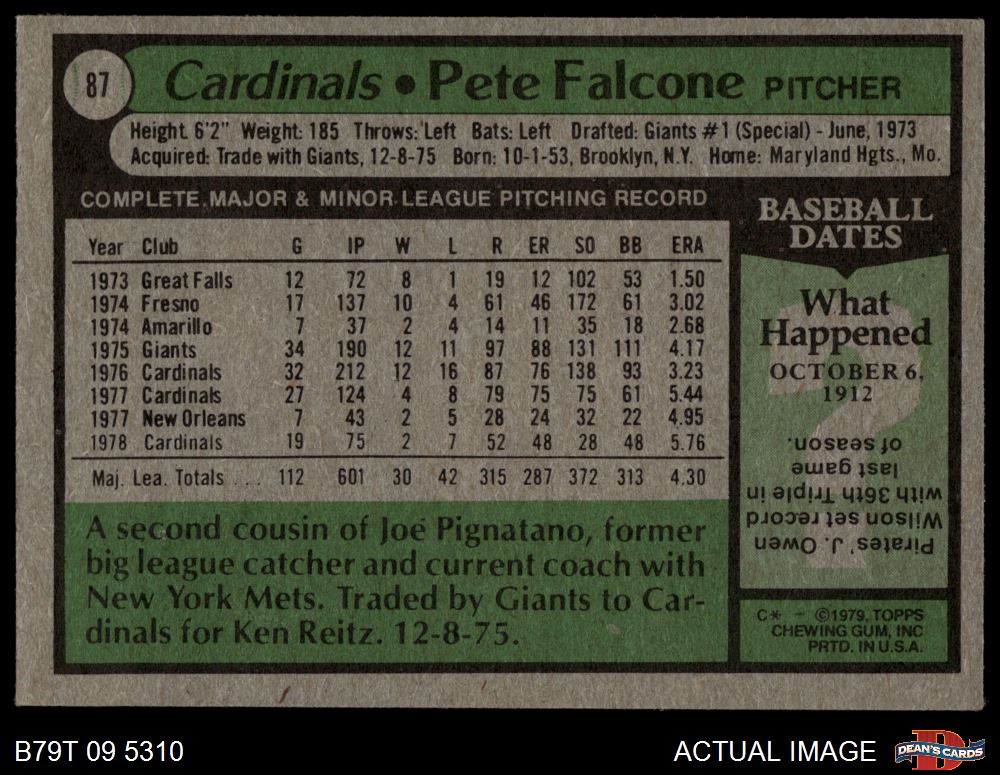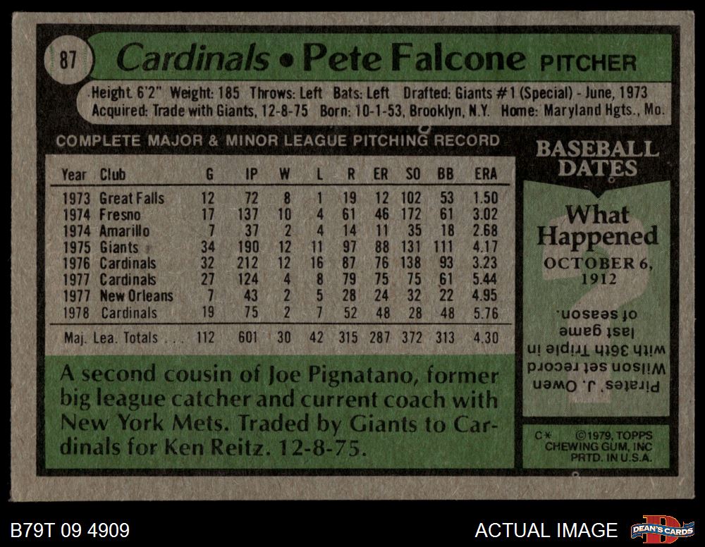 1979 Topps #87 Pete Falcone 3 - VG
