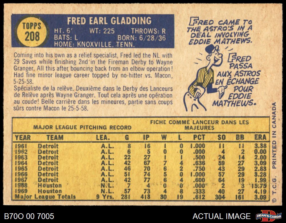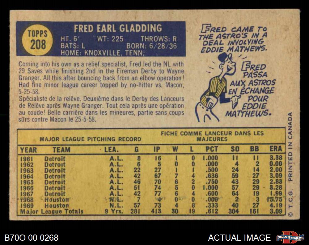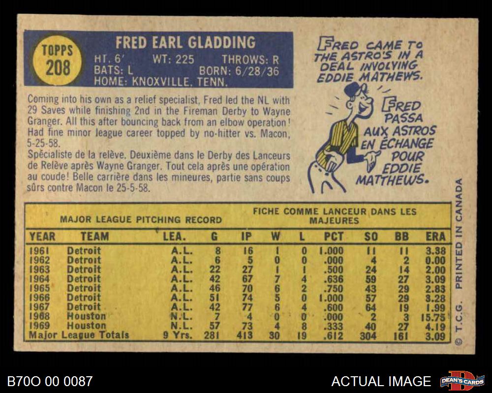 1970 O-Pee-Chee #208 Fred Gladding