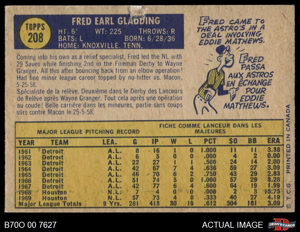 1970 O-Pee-Chee #208 Fred Gladding 2 - GOOD