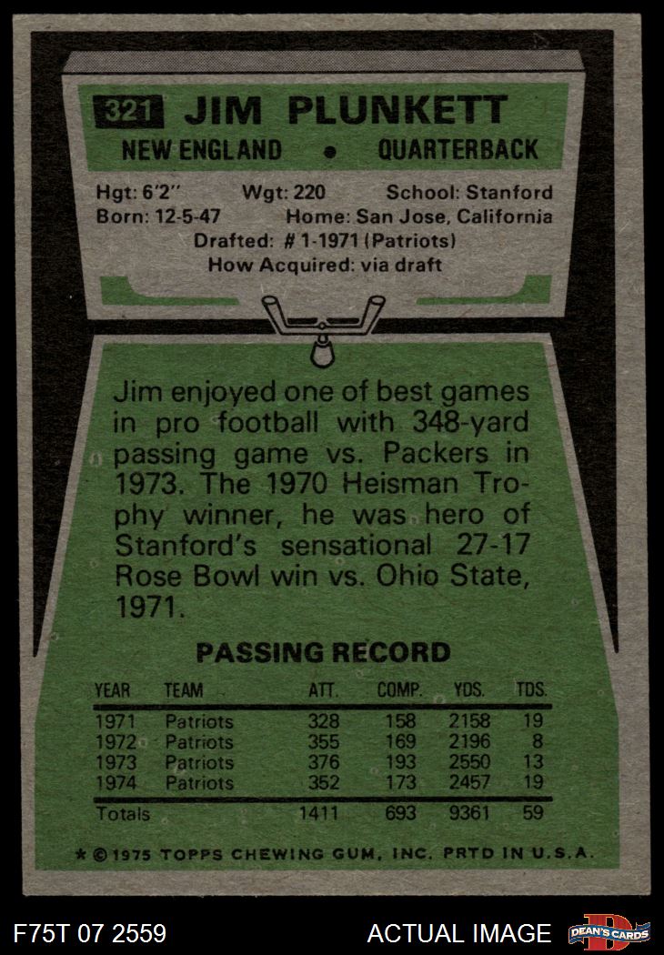 1975 Topps #321 Jim Plunkett 4 - VG/EX
