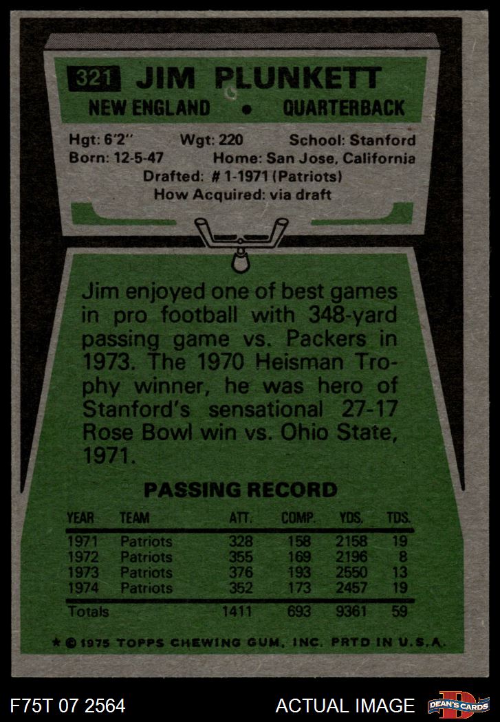 1975 Topps #321 Jim Plunkett 5 - EX