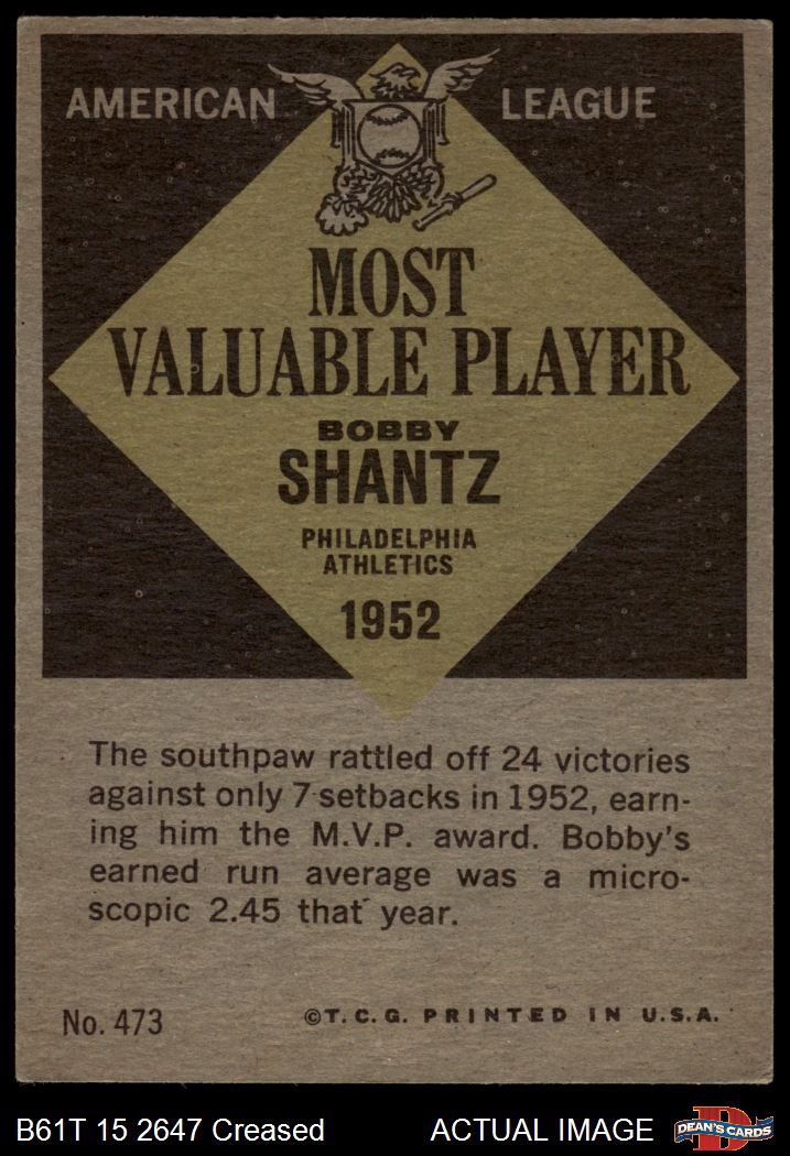 1961 Topps #473 - Bobby Shantz Most Valuable Player 2 - GOOD