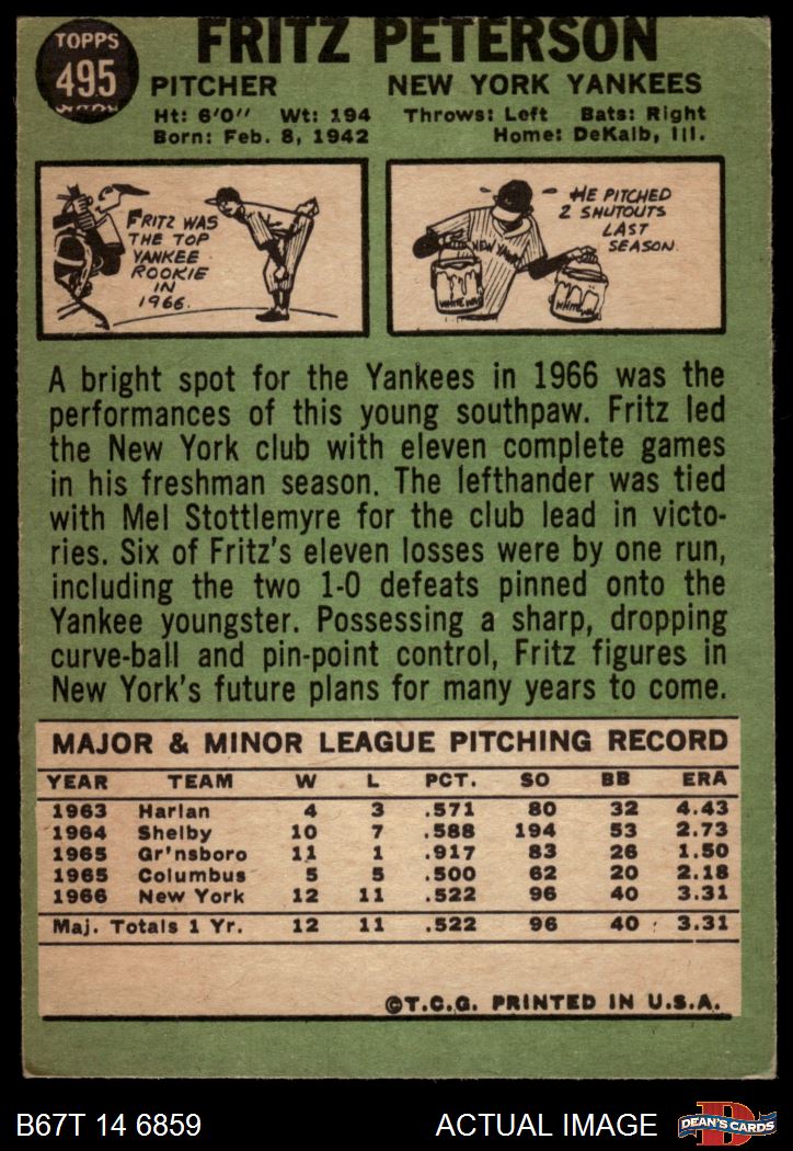 1967 Topps #495 Fritz Peterson 1 - POOR