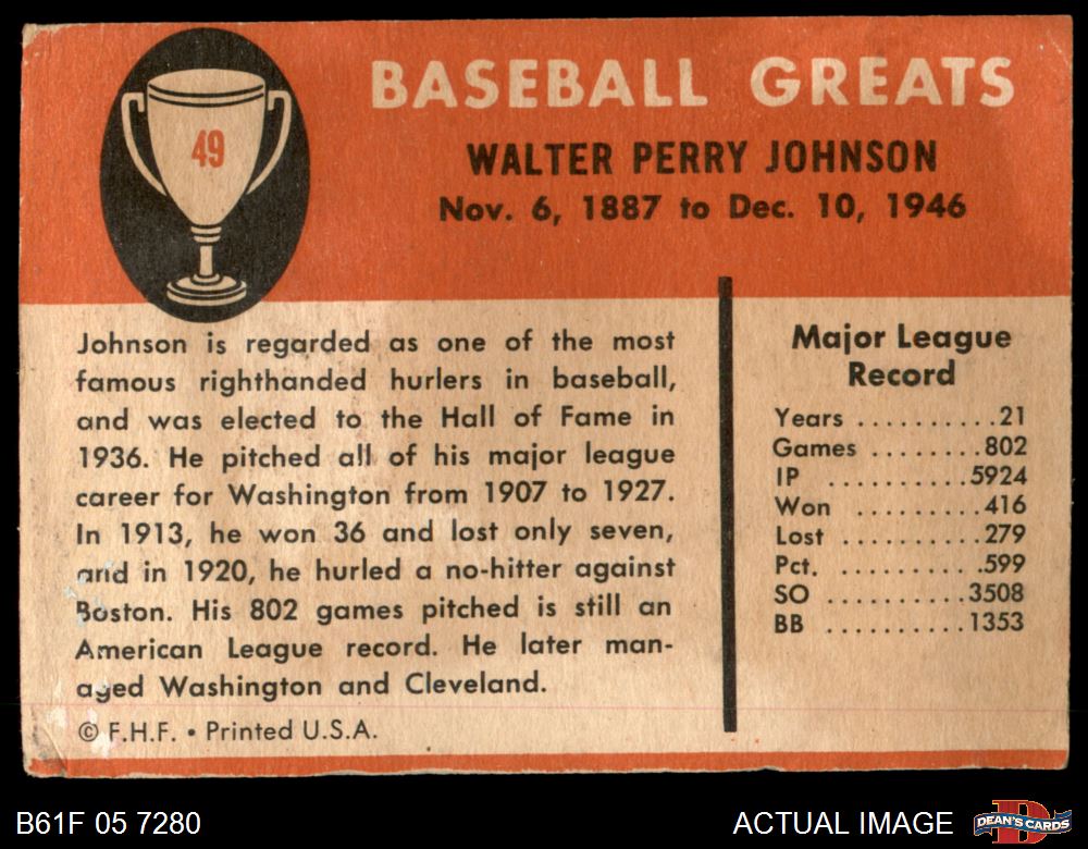 1961 Fleer #49 Walter Johnson 1.5 - FAIR