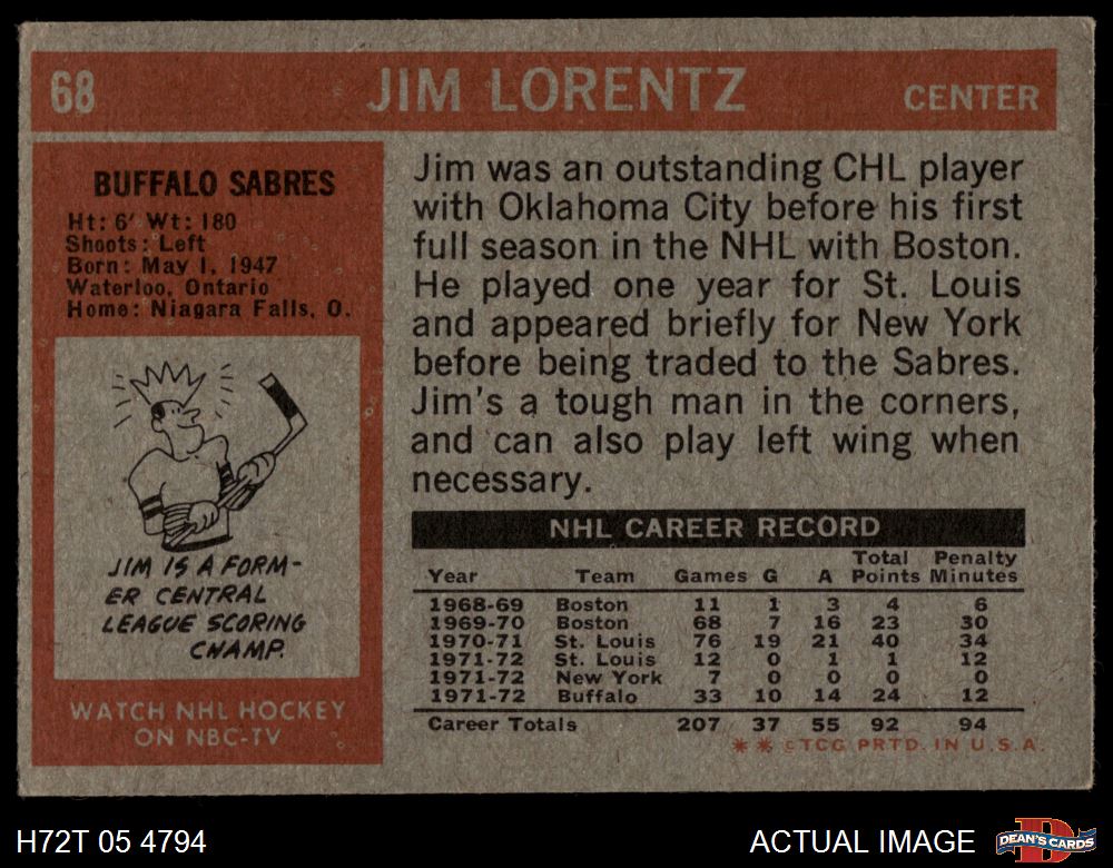 1972 Topps #68 Jim Lorentz 4 - VG/EX