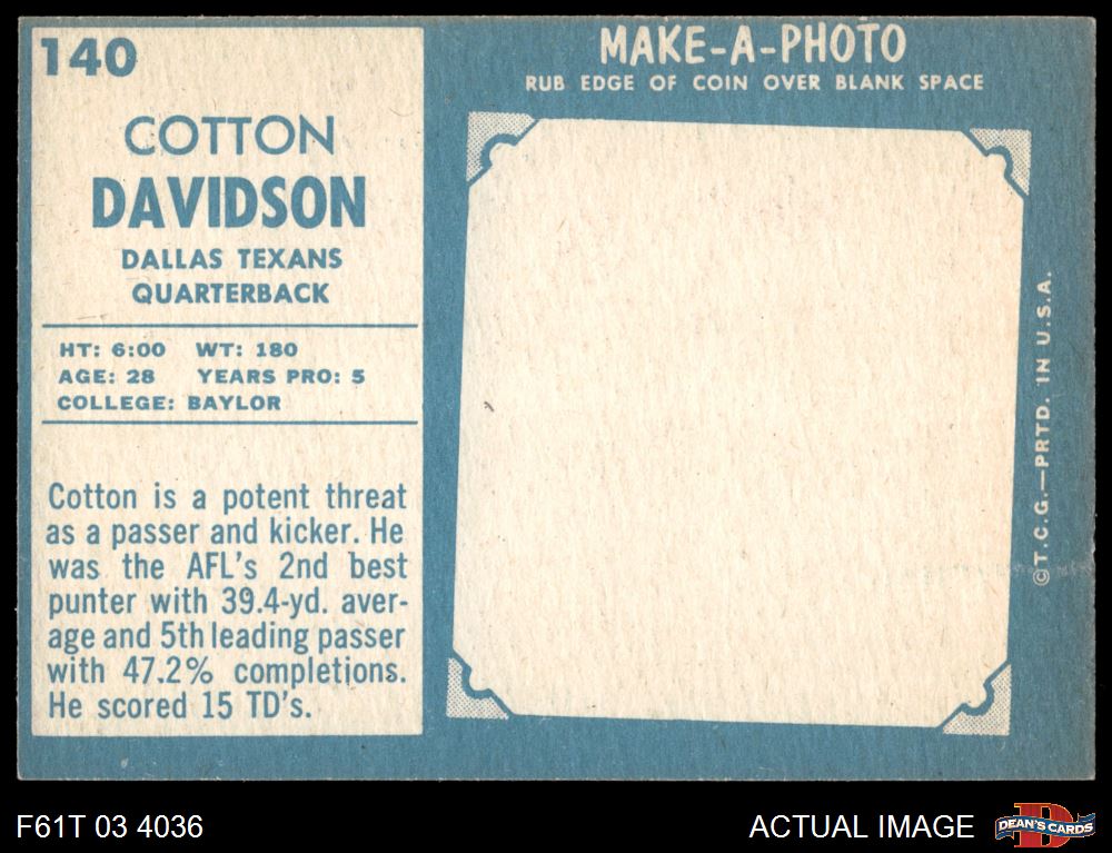 1961 Topps Football (1,365 available)1961 Topps Texans (Chiefs) (62 available)
