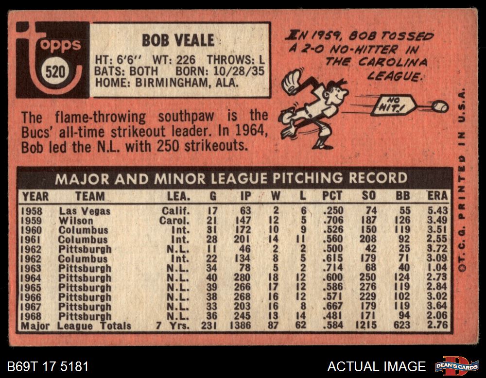 1969 Topps #520 Bob Veale 2.5 - GD+