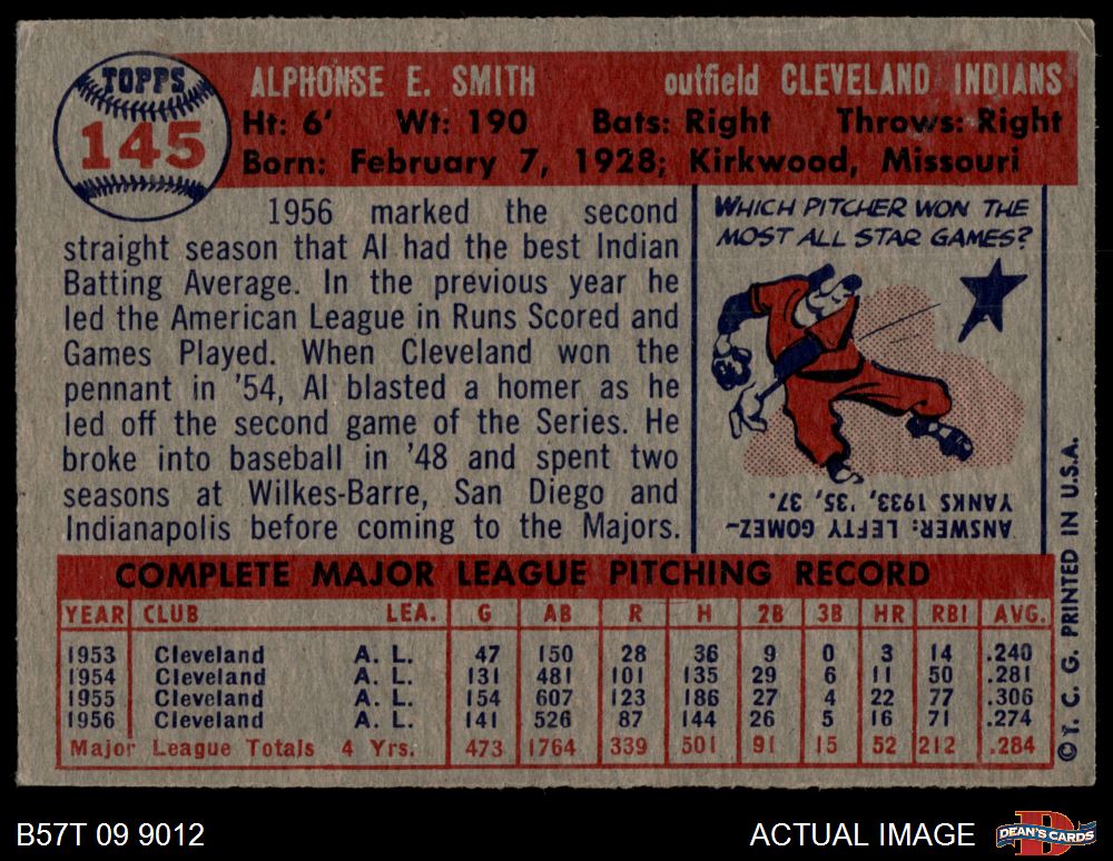 1957 Topps #145 Al Smith 4 - VG/EX