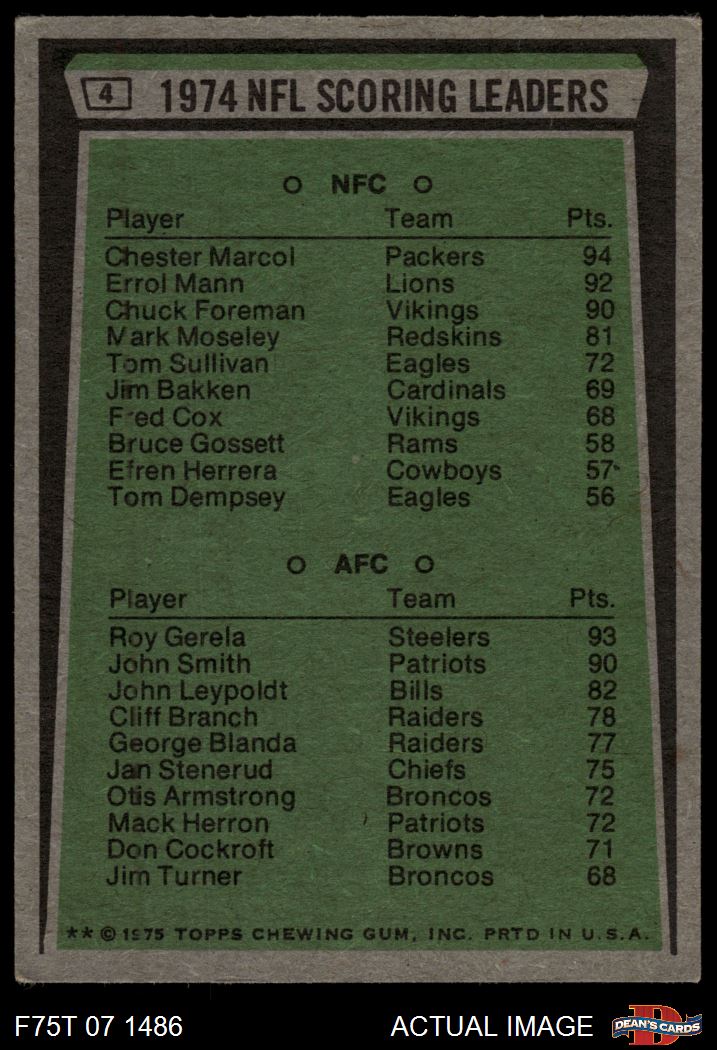 1975 Topps #4 - Chester Marcol / Roy Gerela Scoring Leaders 3 - VG