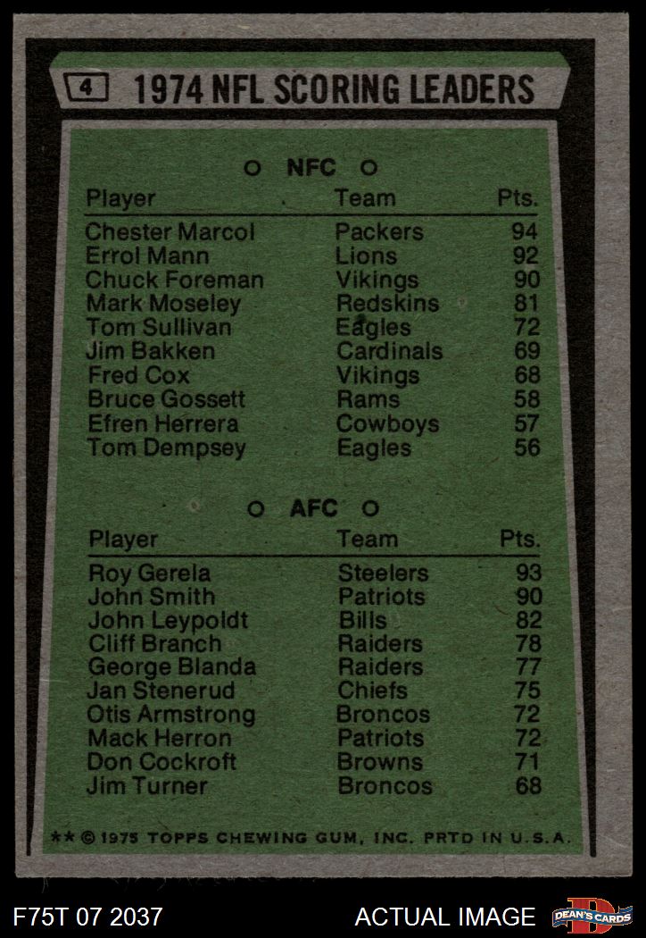 1975 Topps #4 - Chester Marcol / Roy Gerela Scoring Leaders 5 - EX