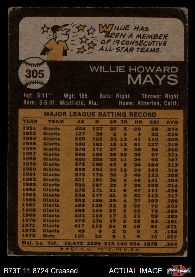 1973 Topps #305 Willie Mays 2.5 - GD+