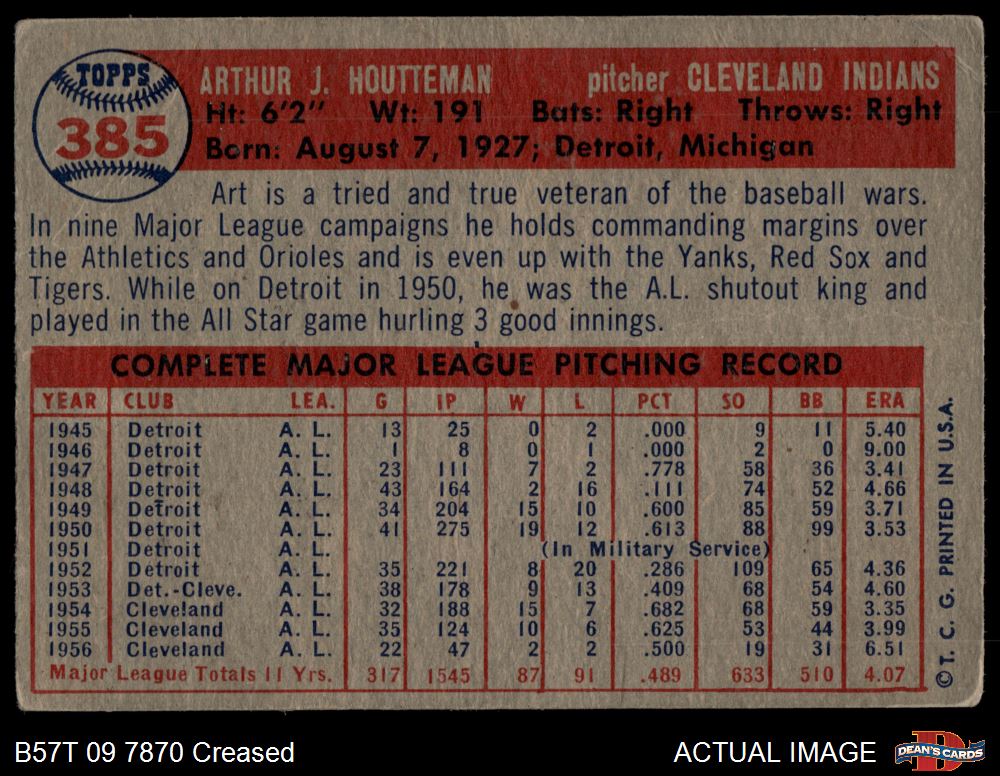 1957 Topps #385 Art Houtteman 2 - GOOD