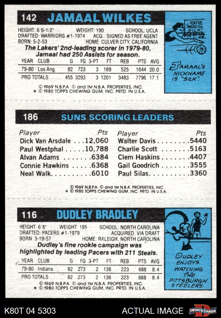 1980 Topps - Dudley Bradley / Paul Westphal / Jamaal Wilkes 116 / 186 / 142 7 - NM