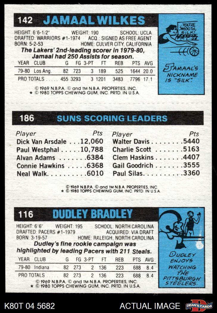 1980 Topps - Dudley Bradley / Paul Westphal / Jamaal Wilkes 116 / 186 / 142 7.5 - NM+
