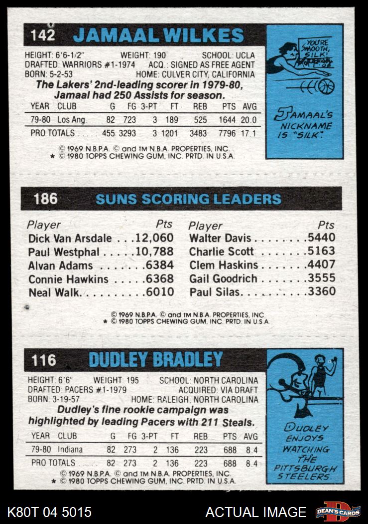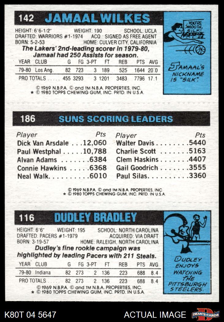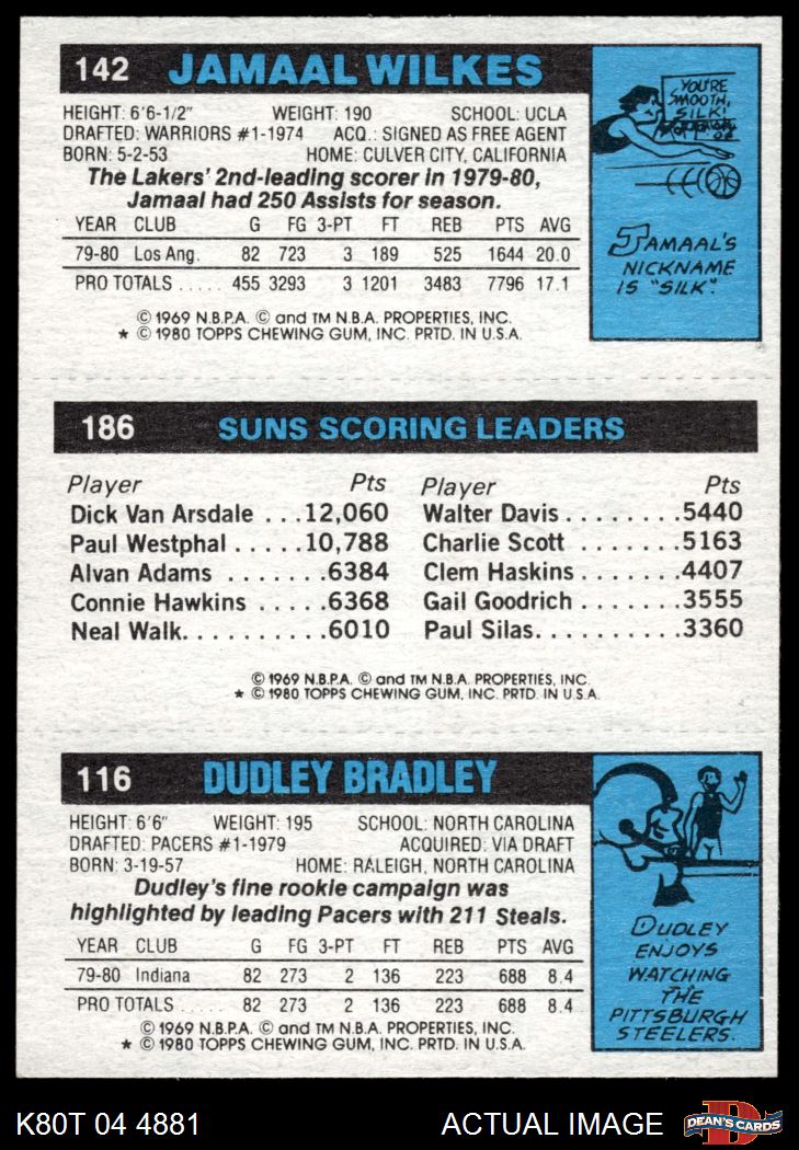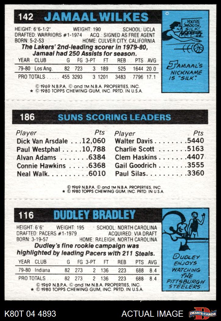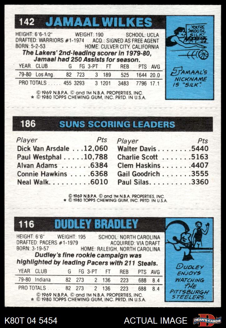 1980 Topps - Dudley Bradley / Paul Westphal / Jamaal Wilkes 116 / 186 / 142 8 - NM/MT