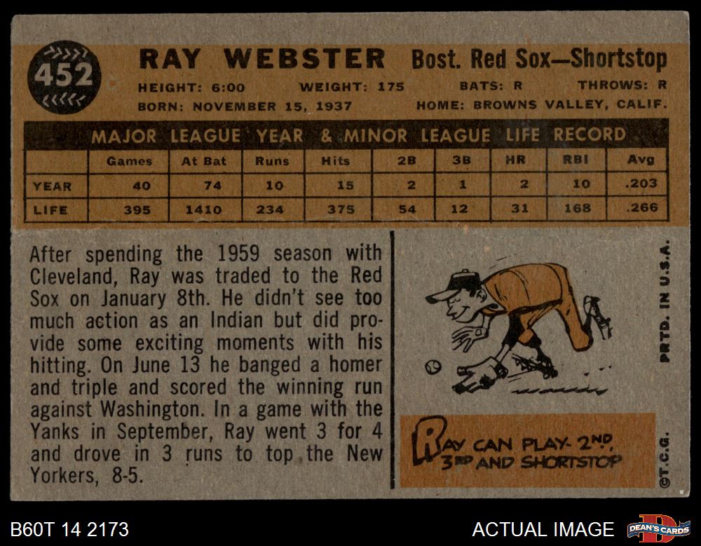 1960 Topps #452 Ray Webster 1.5 - FAIR