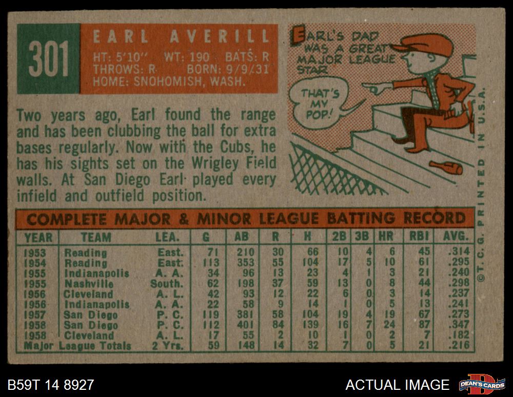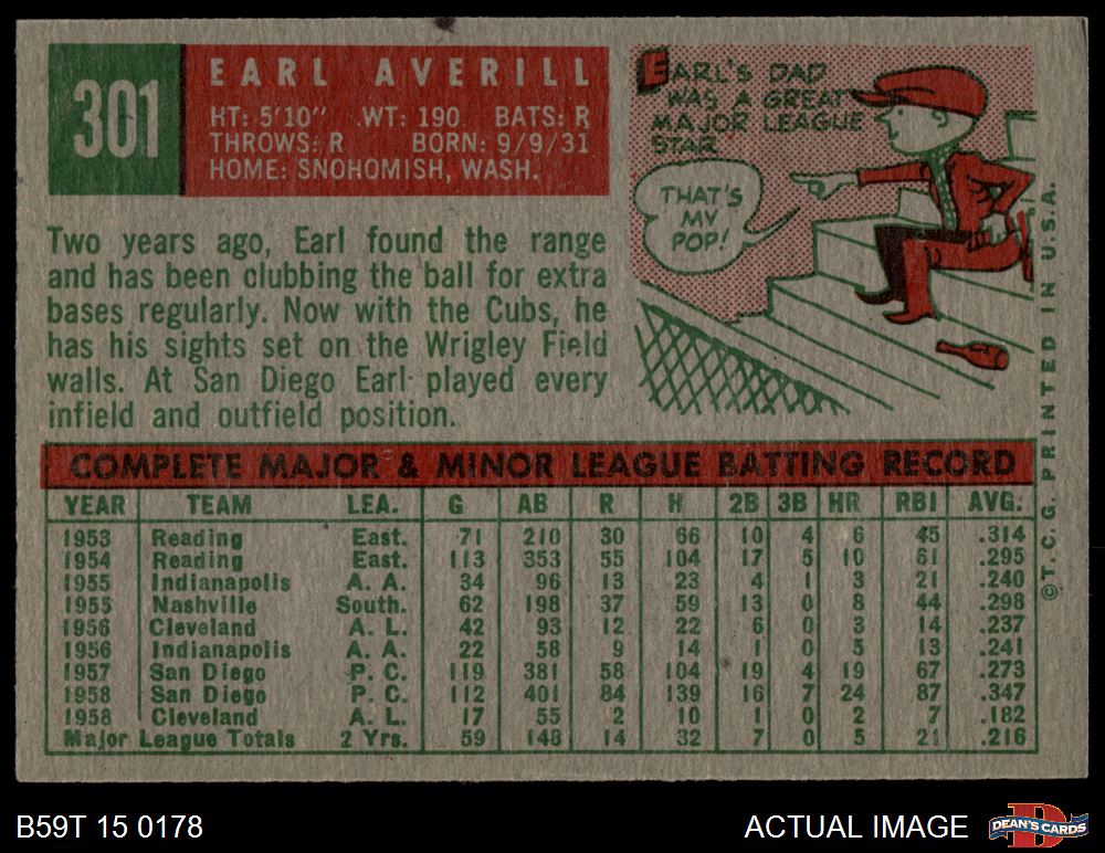 1959 Topps #301 Earl Averill Jr. 4.5 - VG/EX+
