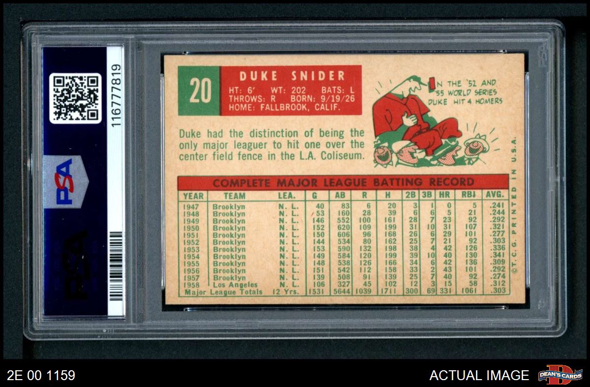 1959 Topps #20 Duke Snider PSA 8 - NM/MT