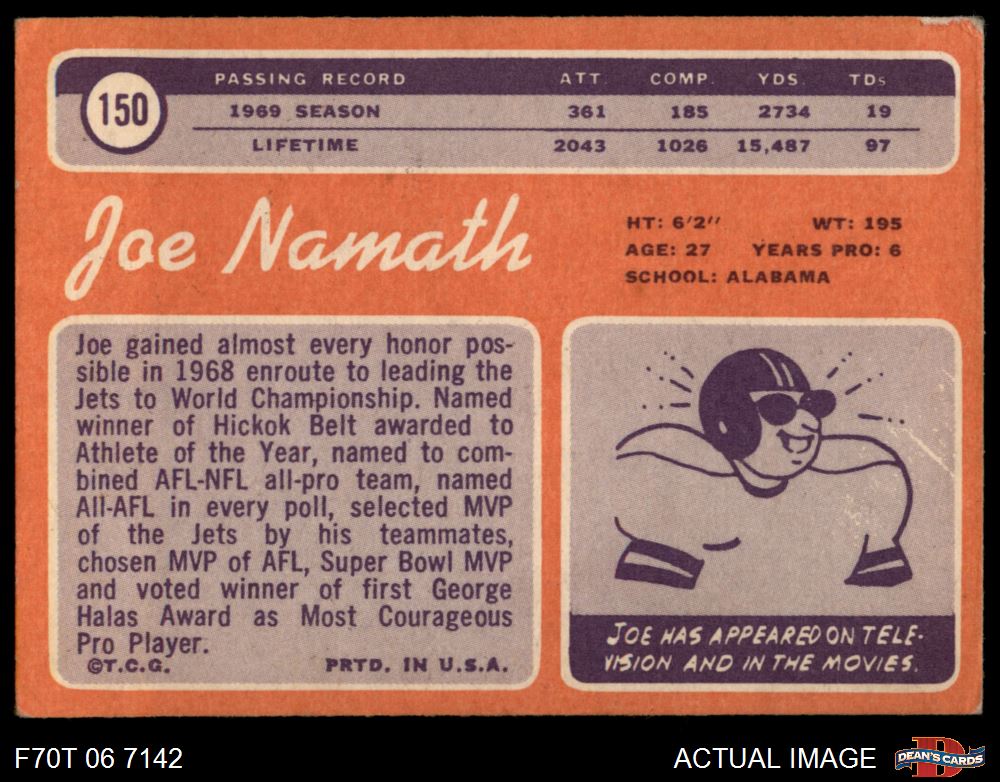 1970 Topps #150 Joe Namath 3 - VG