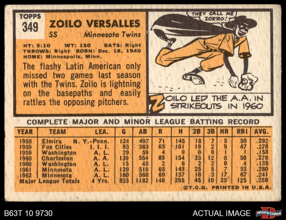1963 Topps #349 Zoilo Versalles 3 - VG