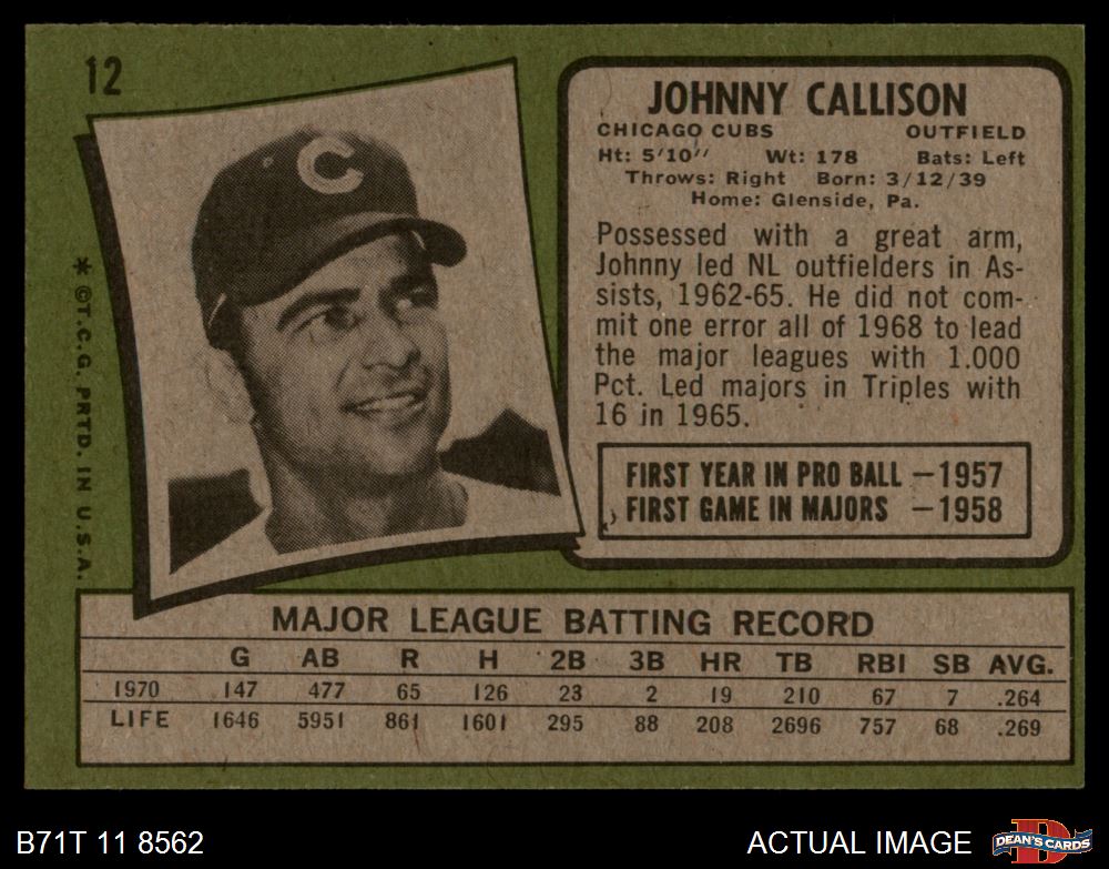 1971 Topps #12 Johnny Callison 4 - VG/EX