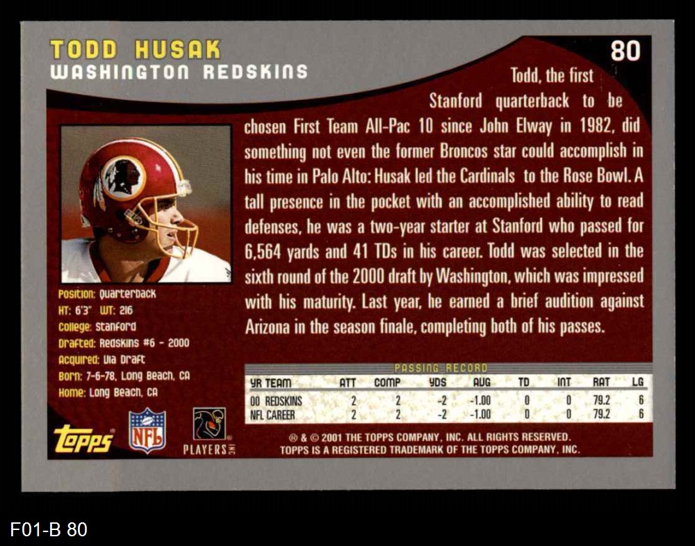 2001 Topps #80 Todd Husak 8 - NM/MT
