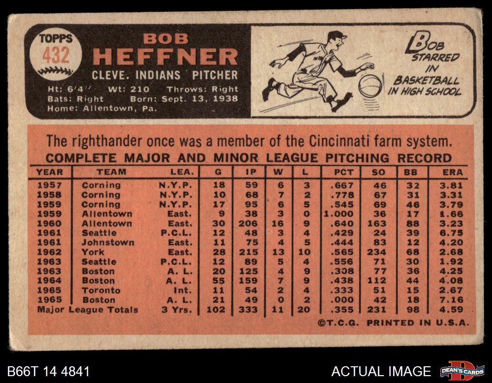 1966 Topps #432 NRM Bob Heffner 2 - GOOD