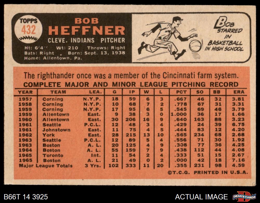 1966 Topps #432 NRM Bob Heffner 5 - EX