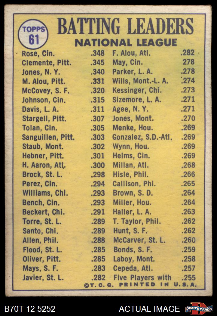 1970 Topps #61 - Roberto Clemente / Pete Rose / Cleon Jones NL Batting Leaders 2 - GOOD